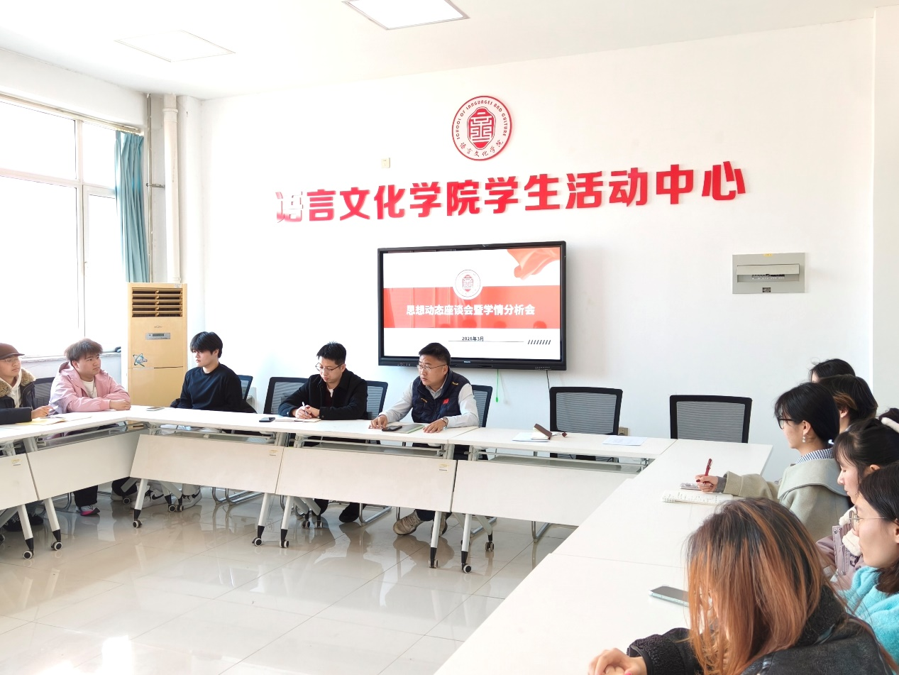 为进一步掌握学生新学期思想动态,深入了解学业发展状况,持续提升人才培养质量,近日,语言文化学院先后组织召开了英语、日语和汉语言文学专业学生的思想动态座谈会暨学情分析会。学院党委书记刘群、党委副书记关鑫、各专业辅导员及学生代表分别参加了相应场次的座谈。